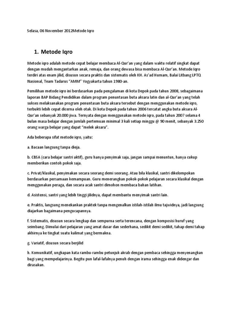 Qiroati jilid 1 pdf mp. Adapun buku panduan iqro terdiri dari 6 jilid di mulai dari tingkat yang sederhana tahap demi tahap sampai pada tingkatan yang sempurna. Apr 11, 2017 — free download and install iqro digital lengkap for pc. Hasil eksperimennya ini kemudian dimantapkan sebagai metode. As'ad mengembangkan kelompok belajar eksperimental menggunakan metode kembangannya, dibantu oleh tim tadarus angkatan muda masjid dan mushalla (amm) yogyakarta.